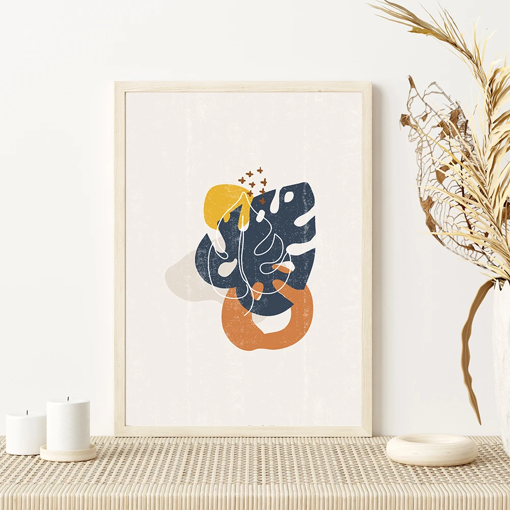 Абстрактный постер с цветами, листья растений, Скандинавская Настен...