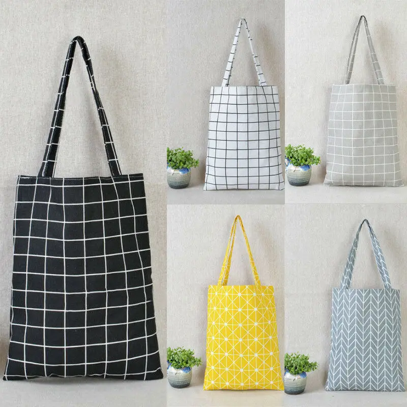Женская сумка для покупок клетчатые хлопчатобумажные холщовые сумки...