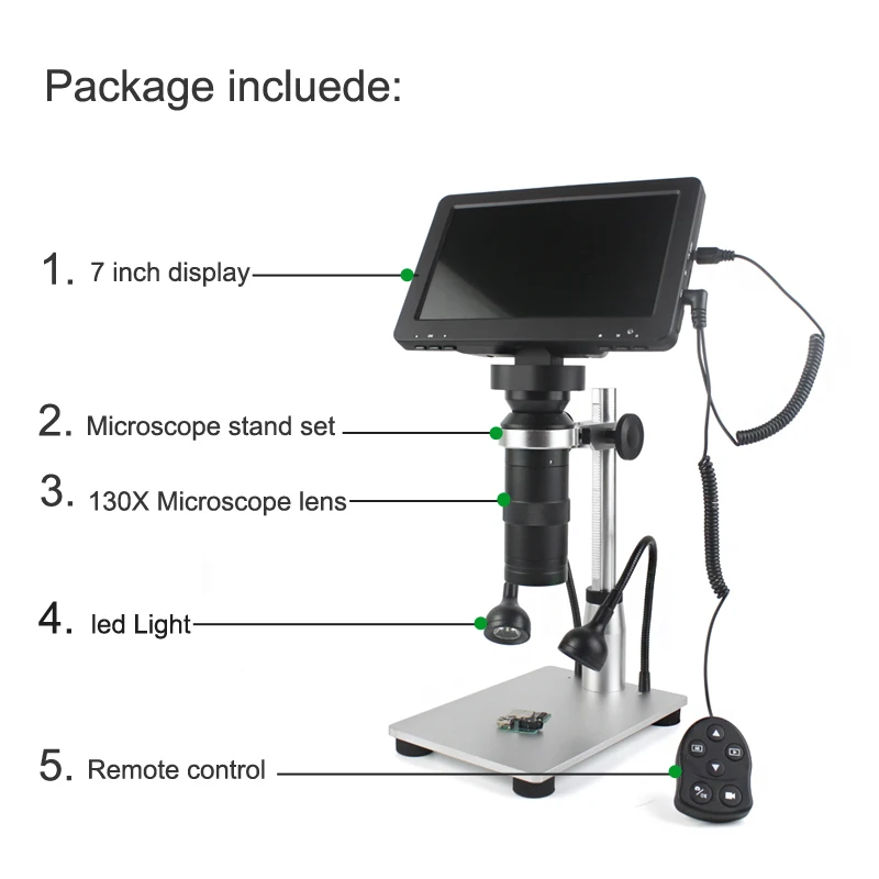 Профессиональный ремонтный HD-видео микроскоп с 1080P 7-дюймовым ЖК-дисплеем, объектив микроскопа, электронный микроскоп с камерой с металлической подставкой