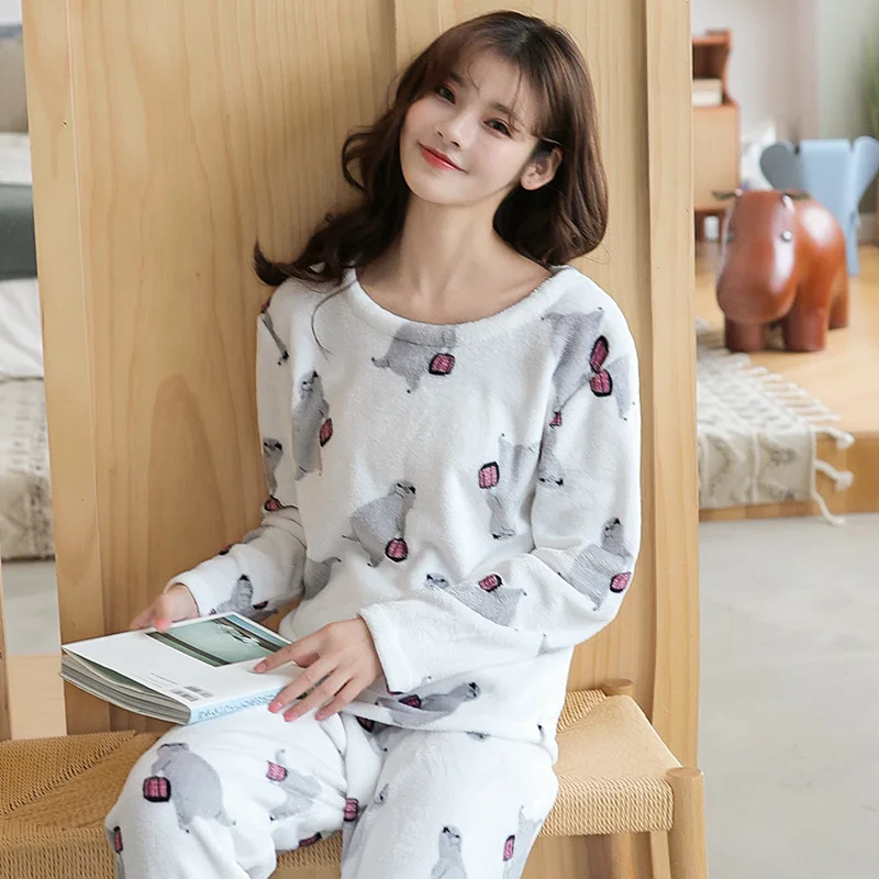 Зимние пижамные комплекты, женская одежда для сна, теплая Фланелева...