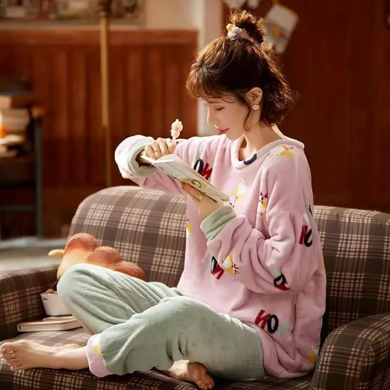Пижама женская, фланелевая, с мультяшным принтом, зимняя, теплая, домашняя пижама