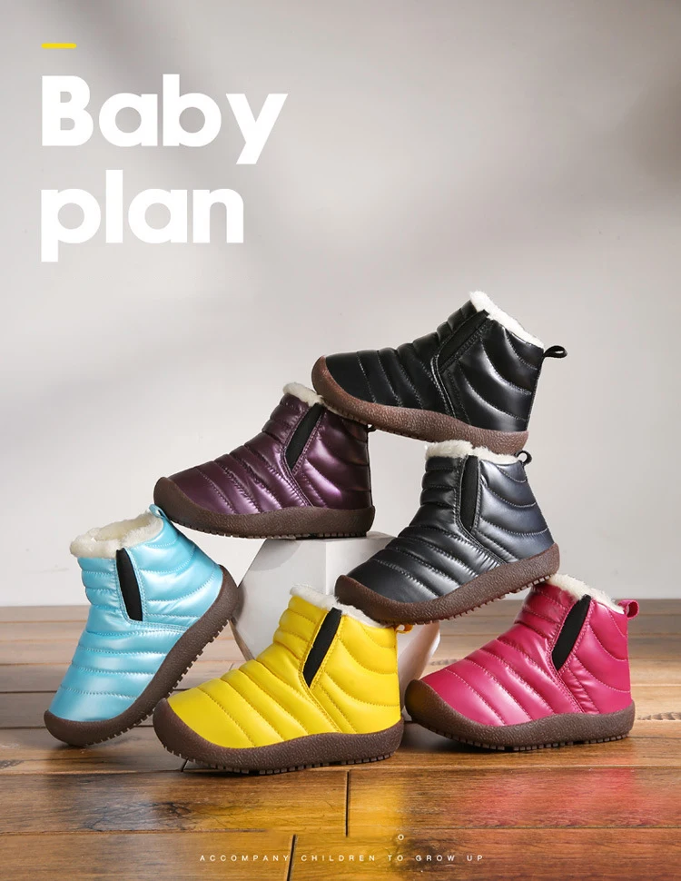 Водонепроницаемые плюшевые зимние ботинки, 6 цветов, детские ботинки, модная повседневная теплая обувь для мальчиков и девочек, зимние спортивные ботильоны унисекс для детей