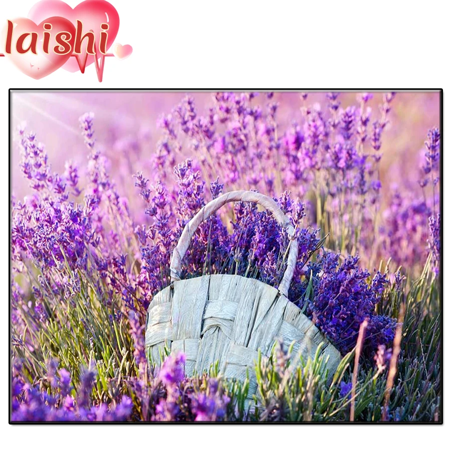 Алмазная живопись пейзаж с лавандой, цветочная корзина, полный квадрат, 5D "сделай сам", алмазная вышивка, мозаика, вышивка крестиком, домашний декор