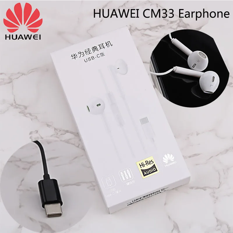 Наушники HUAWEI CM33, оригинальные наушники-вкладыши с разъемом USB Type-C, гарнитура с микрофоном для HUAWEI Mate 10 Pro P10 P20 P30 Pro Note 10 Honor 9 10