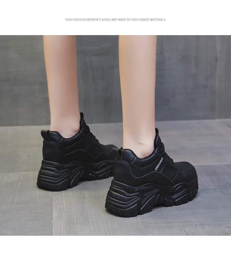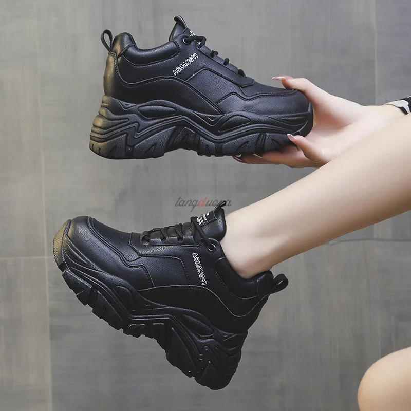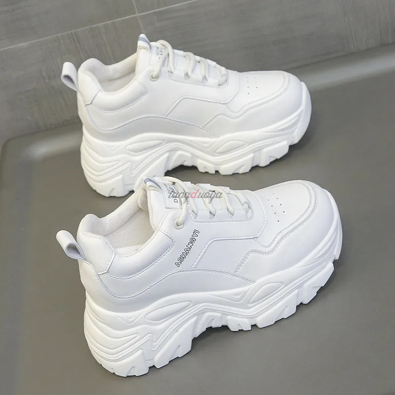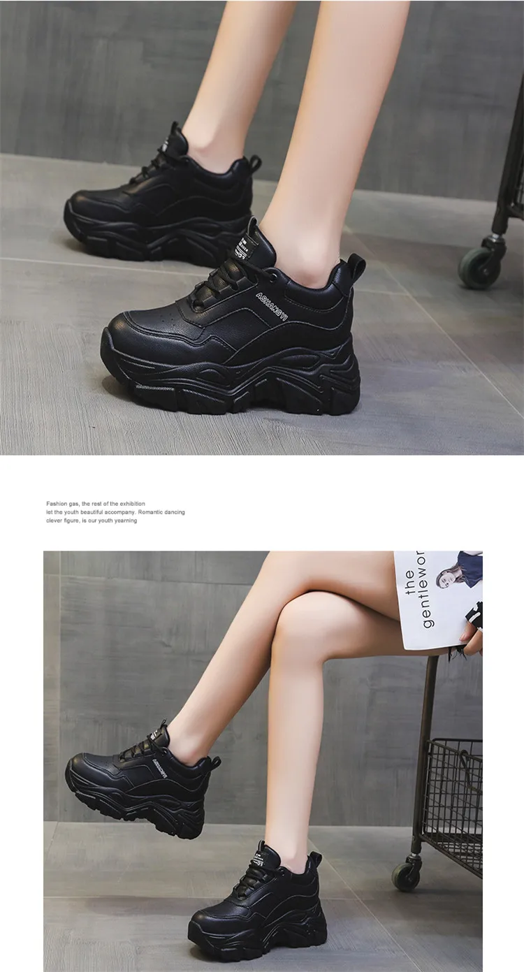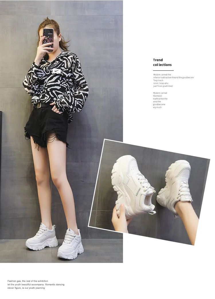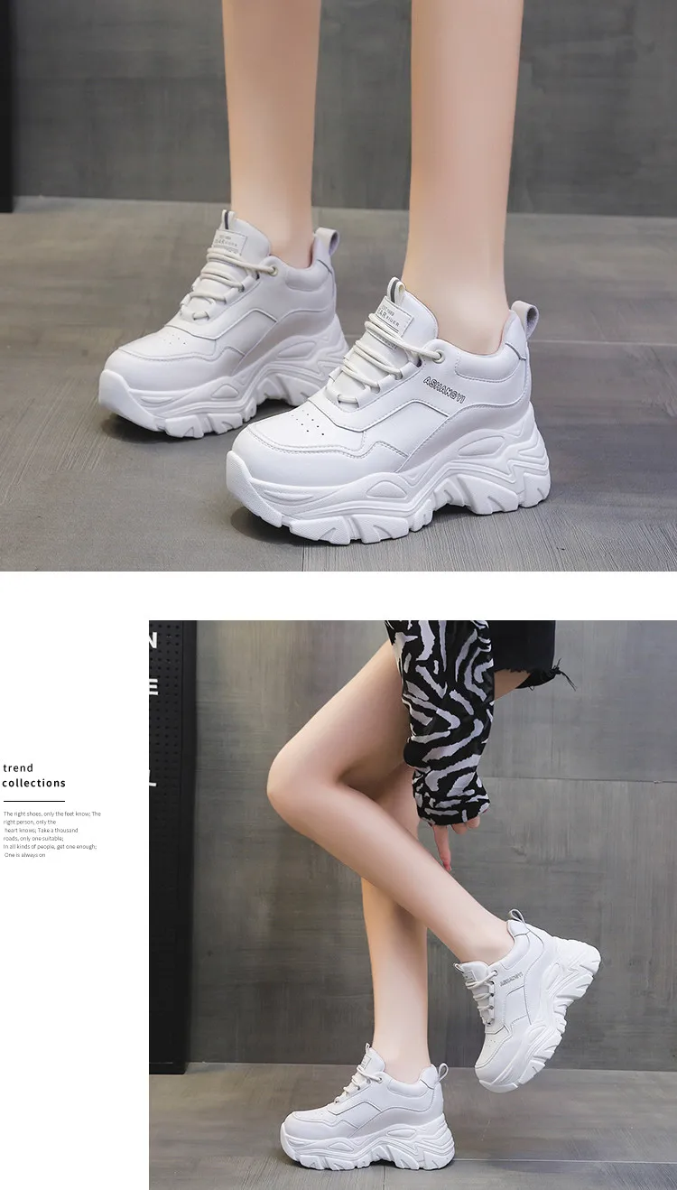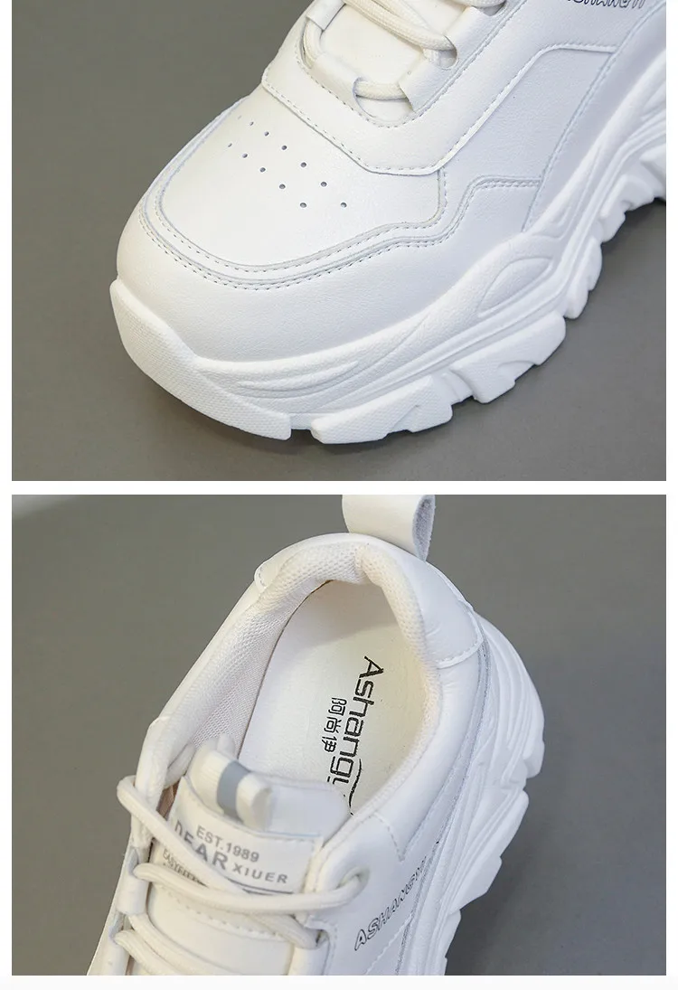 Женская Вулканизированная обувь; Белые кожаные кроссовки на платформе; Женская обувь, увеличивающая рост; Женская спортивная обувь; Женская уличная обувь для бега