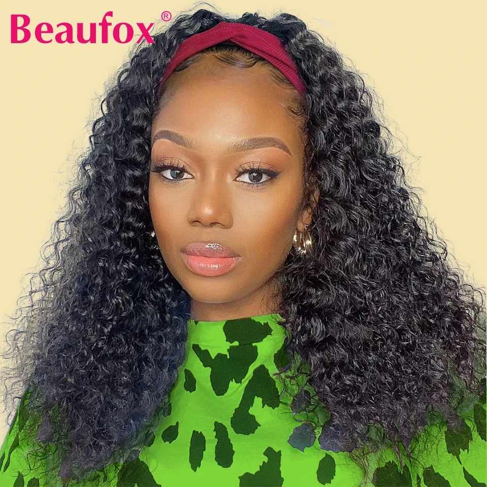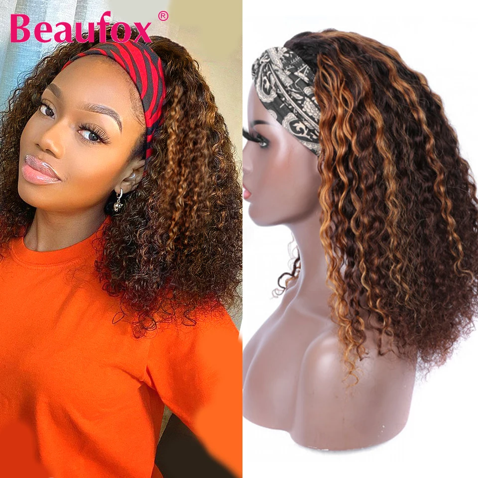 Короткие парики Beaufox из парик с головной повязкой натуральных волос для женщин, вьющиеся, парик с головной повязкой натуральные волосы, светлые, бразильские волосы с эффектом деграде