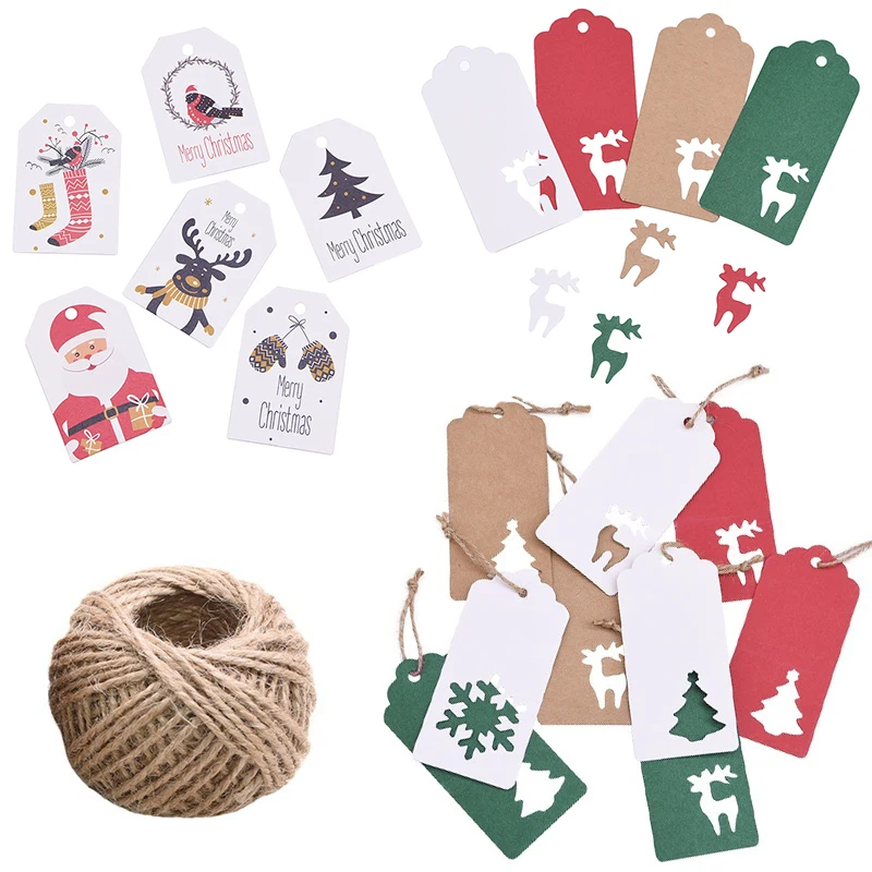 150 шт. рождественские бирки, карточка из крафт-бумаги, Подарочная этикетка, сделай сам, подвесные бирки, пеньковая веревка, подарочная упаковка, Декор, аксессуары