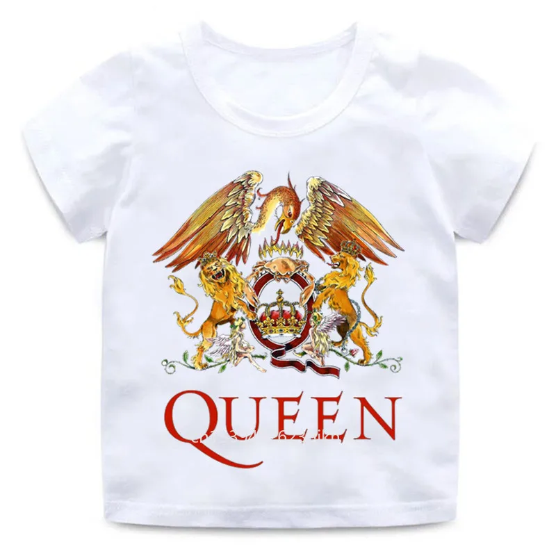 Футболка для мальчиков и девочек, футболка с принтом рок-группы FREDDIE MERCURY Queen, Детская забавная одежда, детская летняя белая короткая футболка