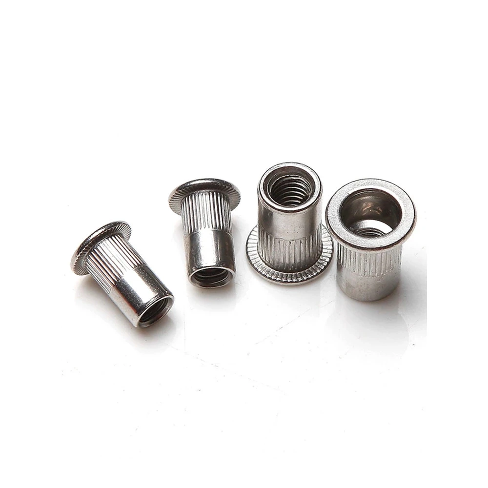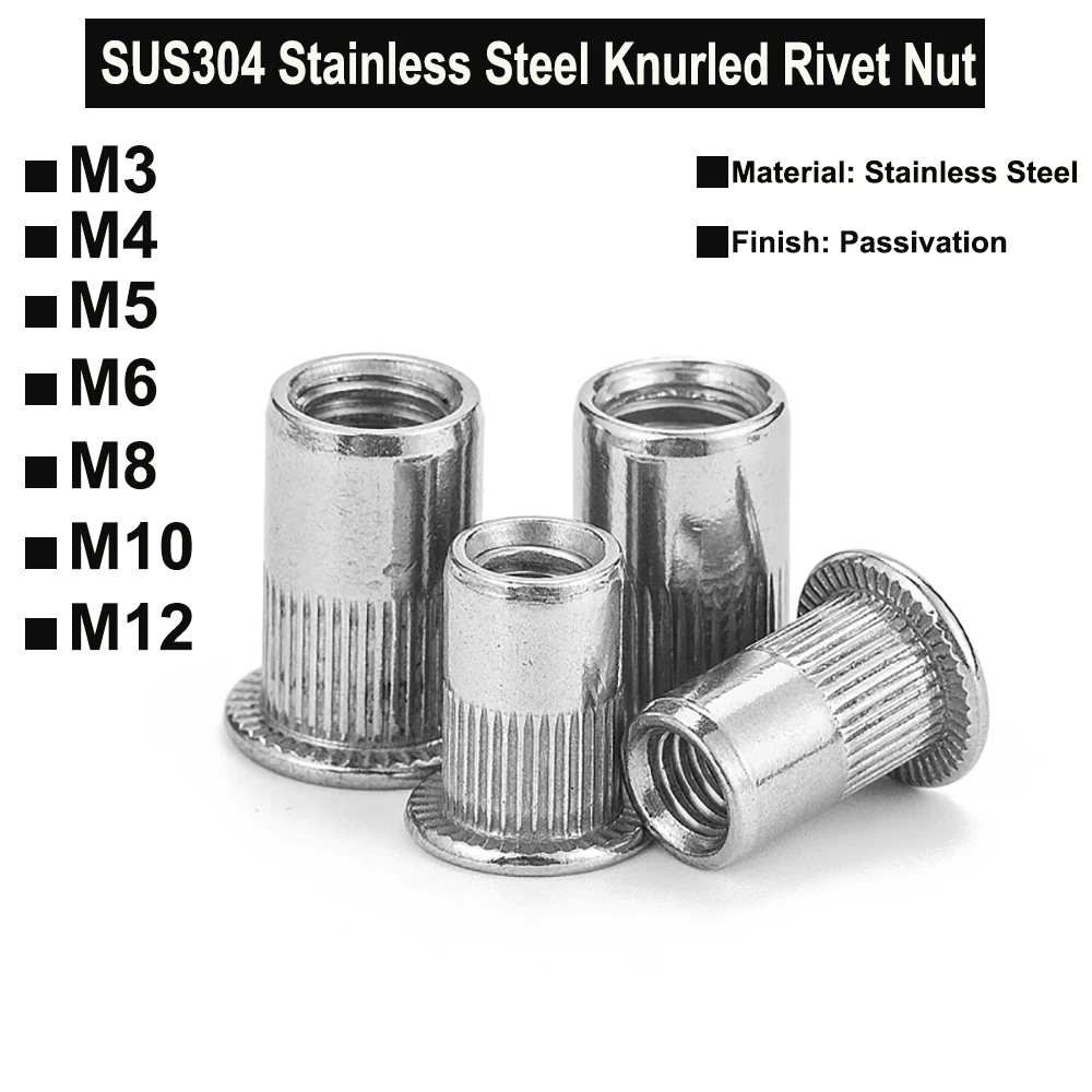 10/5/2 шт. M3 M4 M5 M6 M8 M10 M12 SUS304 Нержавеющая сталь заклепочная гайка с насечками с плоской головкой заклепки с резьбой вставки Кепки заклепочная гайка