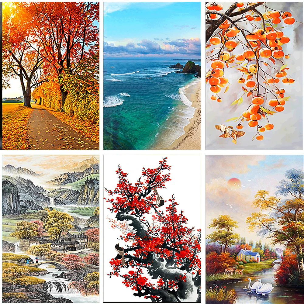 Полноразмерная алмазная живопись, пейзаж, цветы, 5D, алмазная вышив...