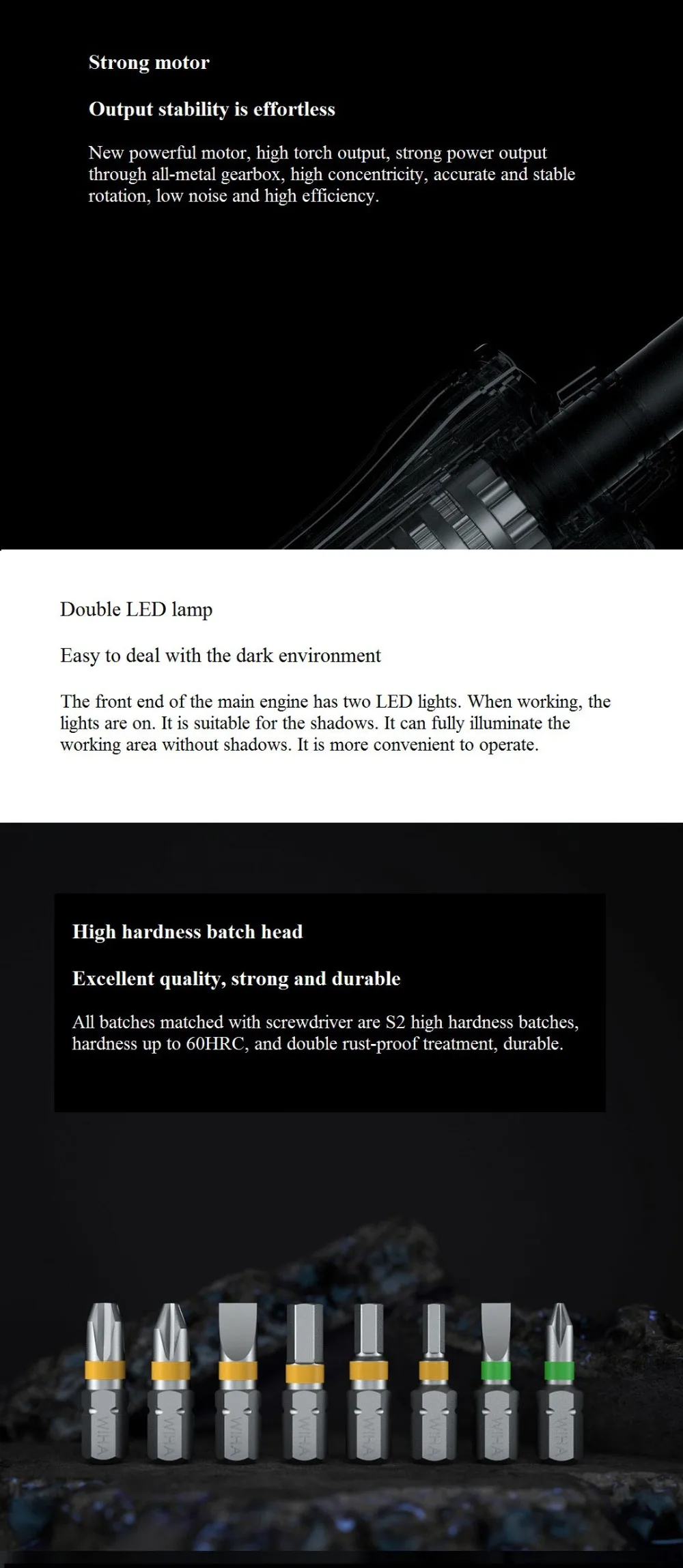 Набор электрических отверток Wiha zu с 8 высокоподходящими партиями, набор многофункциональных перезаряжаемых электрических отверток