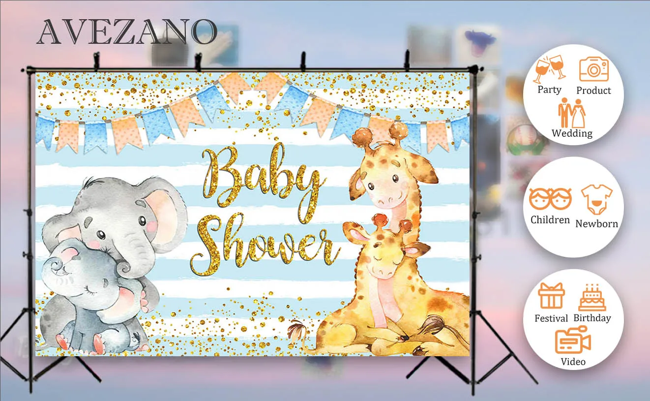 Фон Avezano для фотосъемки с изображением слона и жирафа торта, праздвечерние чный декор, флаг, золотые точки, реквизит для фотосъемки, фотозона