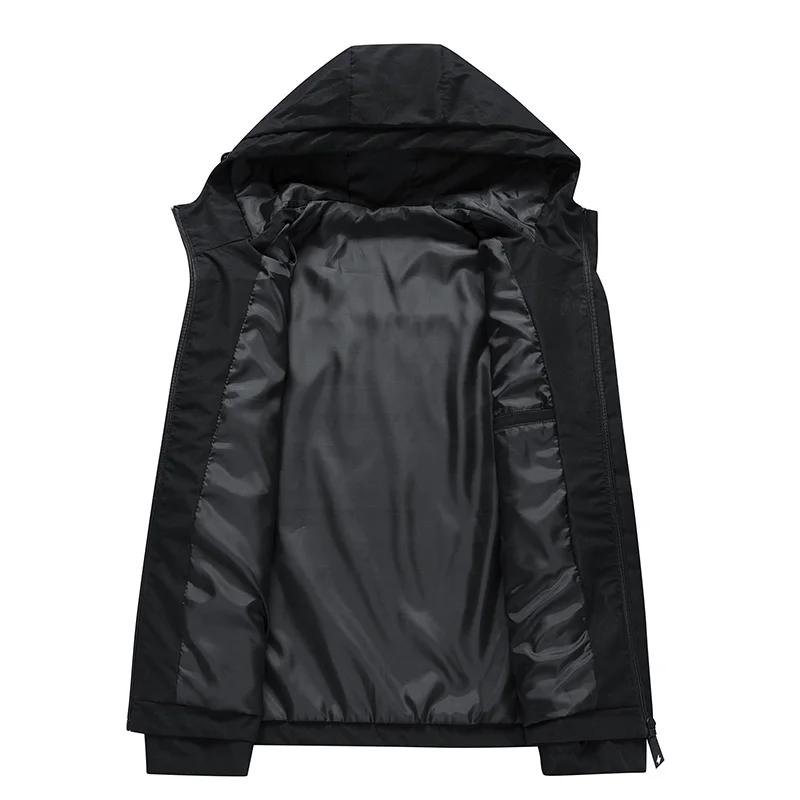 Мужская куртка с капюшоном, с длинным рукавом и карманами, на молнии