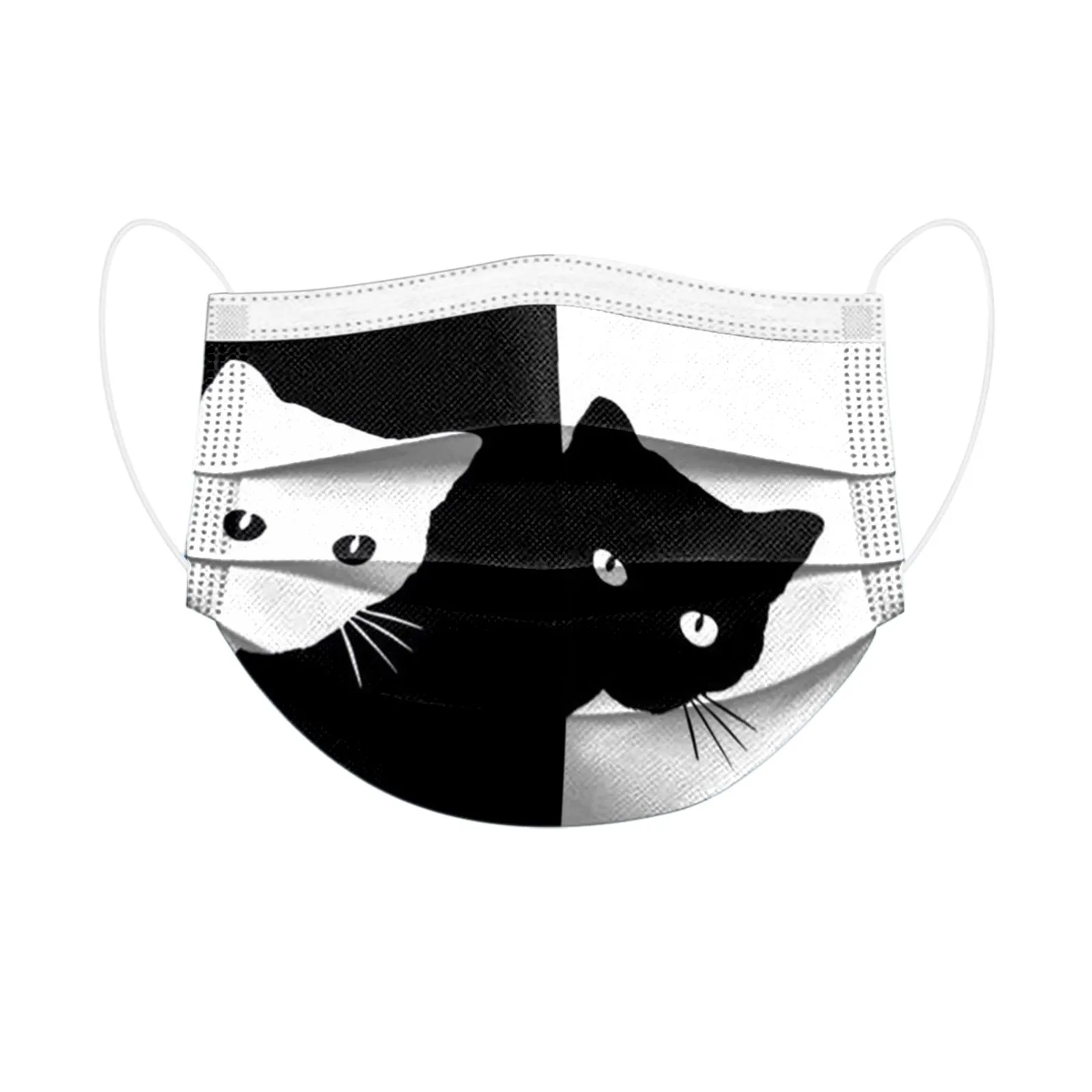 10 шт., дышащая 3-слойная одноразовая маска с принтом кошки для взрослых