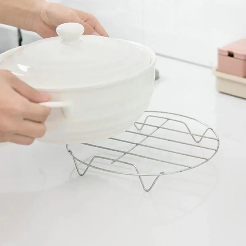 Полка для приготовления пищи на Высоких Ножках, круглая Стальная Полка для готовки на пару, полка для варки на пару в микроволновой печи, C3F3