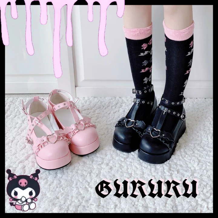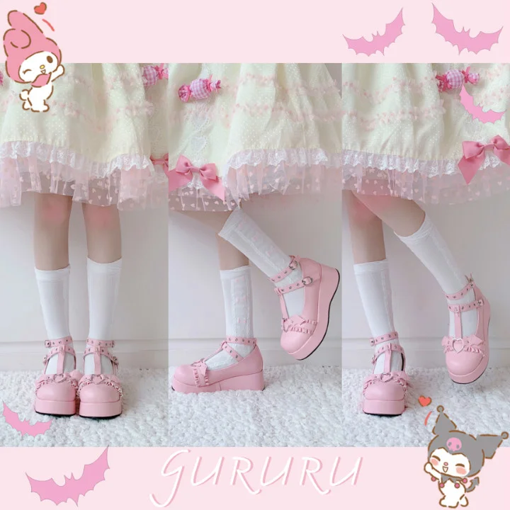 Обувь в стиле "Лолита", дневные ботинки в стиле девриана, маленькая летучая мышь, бант, демон, темный готический панк, платформа, косплей, Лолиты на высоком каблуке 5,5 см