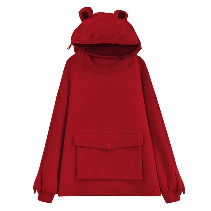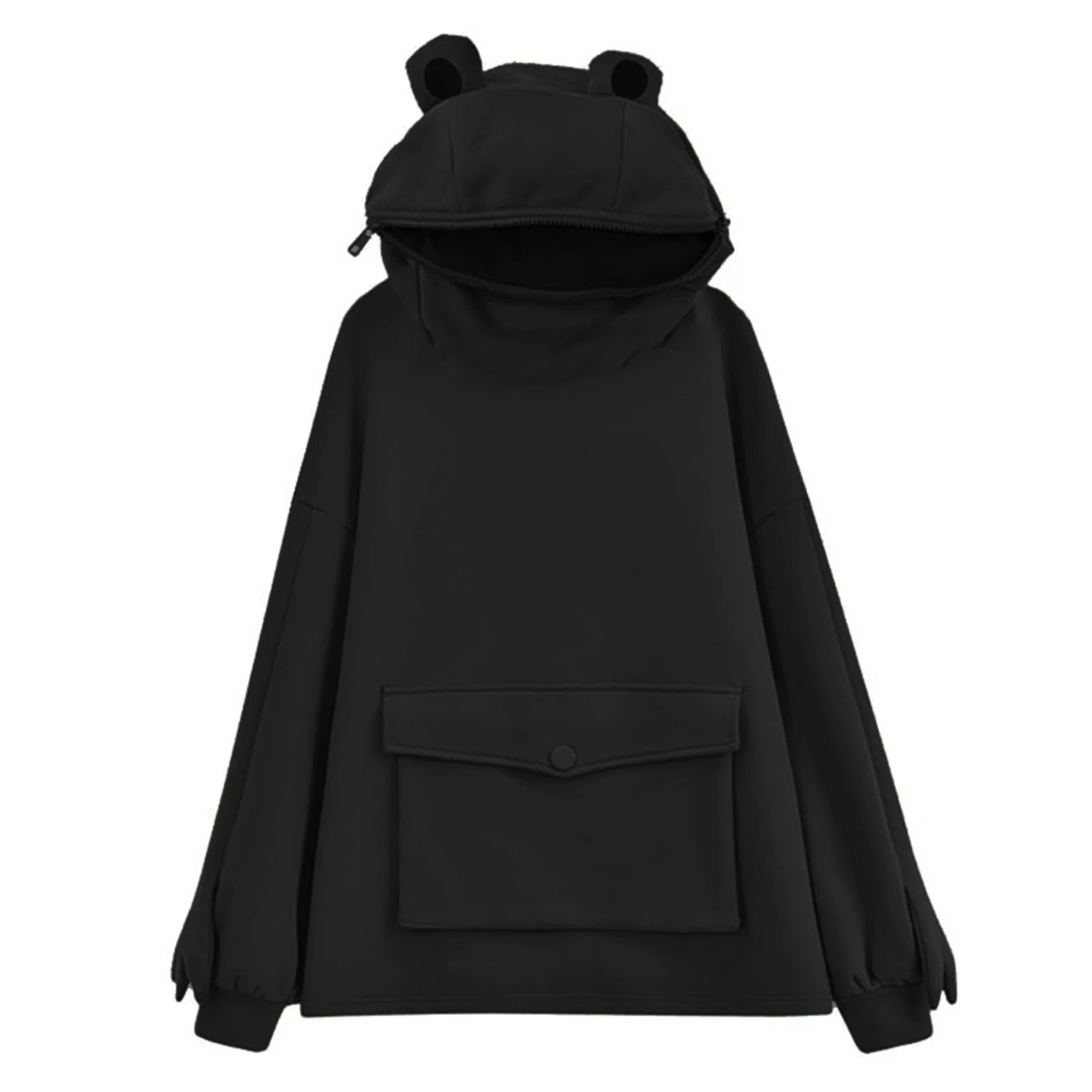 Новинка Женская толстовка с лягушкой, милая однотонная толстовка с капюшоном с длинным рукавом и карманом с клапаном