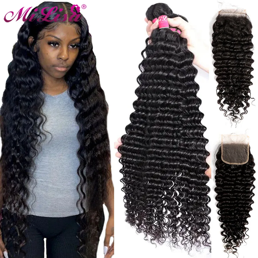 30-дюймопряди глубоких волн с 13x4 фронтальными бразильскими пряди для наращивания волос с 4x4 закрытием HD 5X5 с пряди