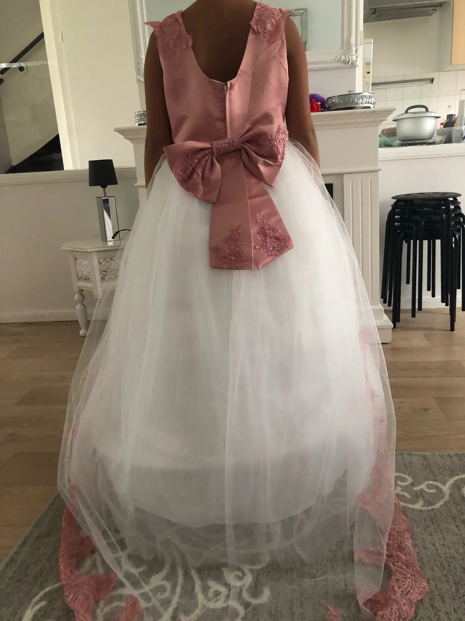классный подъюбник, брала для 4 летней малышки, она у меня средненькая, в талии великоват-подойдет и на пышечку. Регулируется шнурком на талии, на кольцах, в пол, ткань классная, похож на мой свадебный )) Пришёл быстро