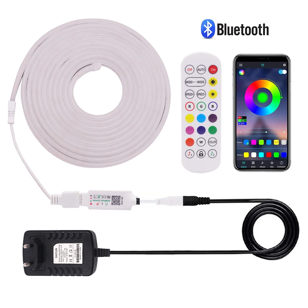Ленсветильник светодиодная неоновая для шкафа, гардероба, 12 В, RGB, с дистанционным управлением через приложение по Bluetooth, SMD 5050, 12345 м