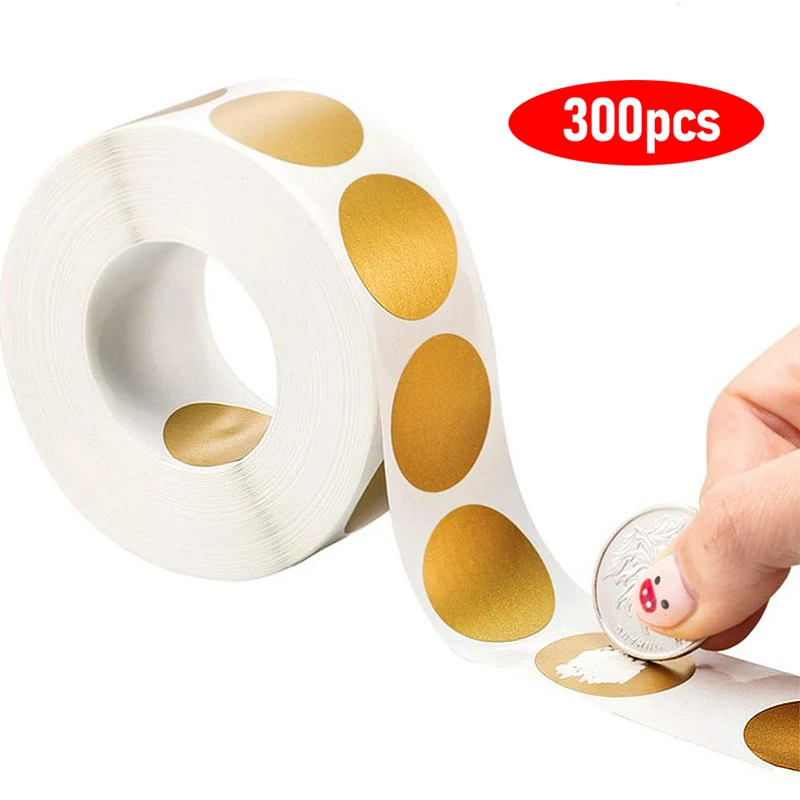Этикетки круглые, золотые, для игры, 300 шт.рулон
