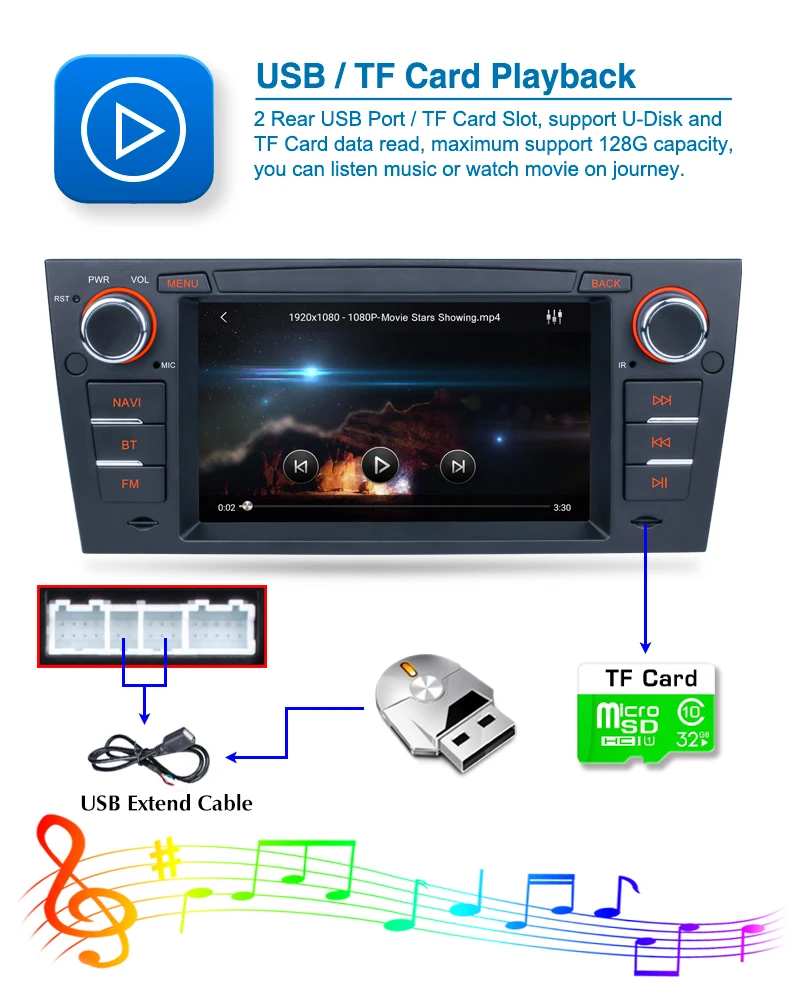 ● Операционная система Android 9,1● Память: 1G + 16G/2G + 32G● 7 дюймов емкостный сенсорный экран● Поддержка емкостного сенсорного экрана, поддержка мультитач;● Встроенный Bluetooth, телефонная книга и BT музыка;● Встроенный WIFI, поддержка точки доступа Wi-Fi;● Поддержка функции mirrorlink● Встроенный GPS/компас двухрежимный навигационный модуль,● Функция USB● Встроенный fm-радио● Многоформатное декодирование аудио и видео, поддержка полноформатного 1080P● Поддержка входа камеры заднего вида;● Поддержка загрузки, установки, удаления интернет-приложений● Зеркальная связь с Andriod телефоном и IOS телефоном● Аудио: MP3 MP2 AAC OGG FLAC APE WMA WAV RM AC3● Vidio:AVI 3GP/MP4 MOV MPG MKV WMV RMVB