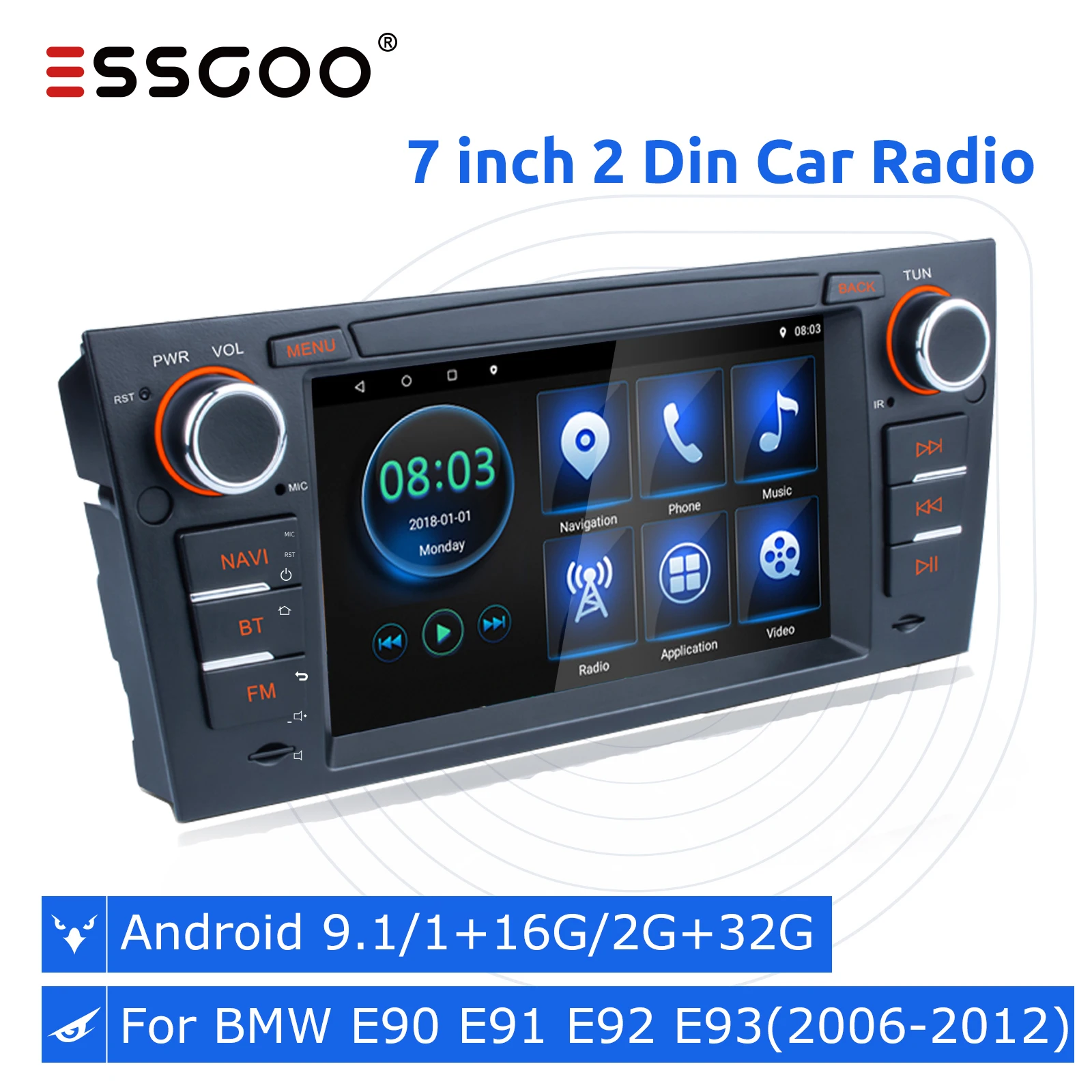Автомагнитола ESSGOO 2 Din, 2 + 32 ГБ, Android 9,1, GPS, для BMW 3, E90, E91, E92, E93