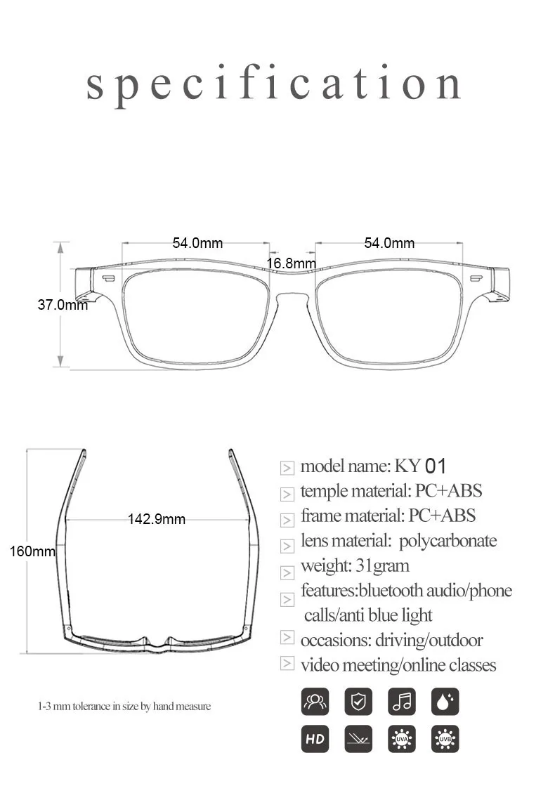 BT 5,0, умные очки KY, очки для музыки, голосового вызова, солнцеза...