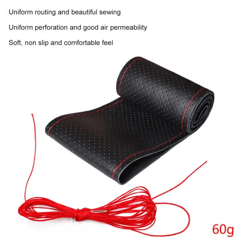 Оплетка на руль, оплетка из мягкой кожи, диаметр нити 36-38 см