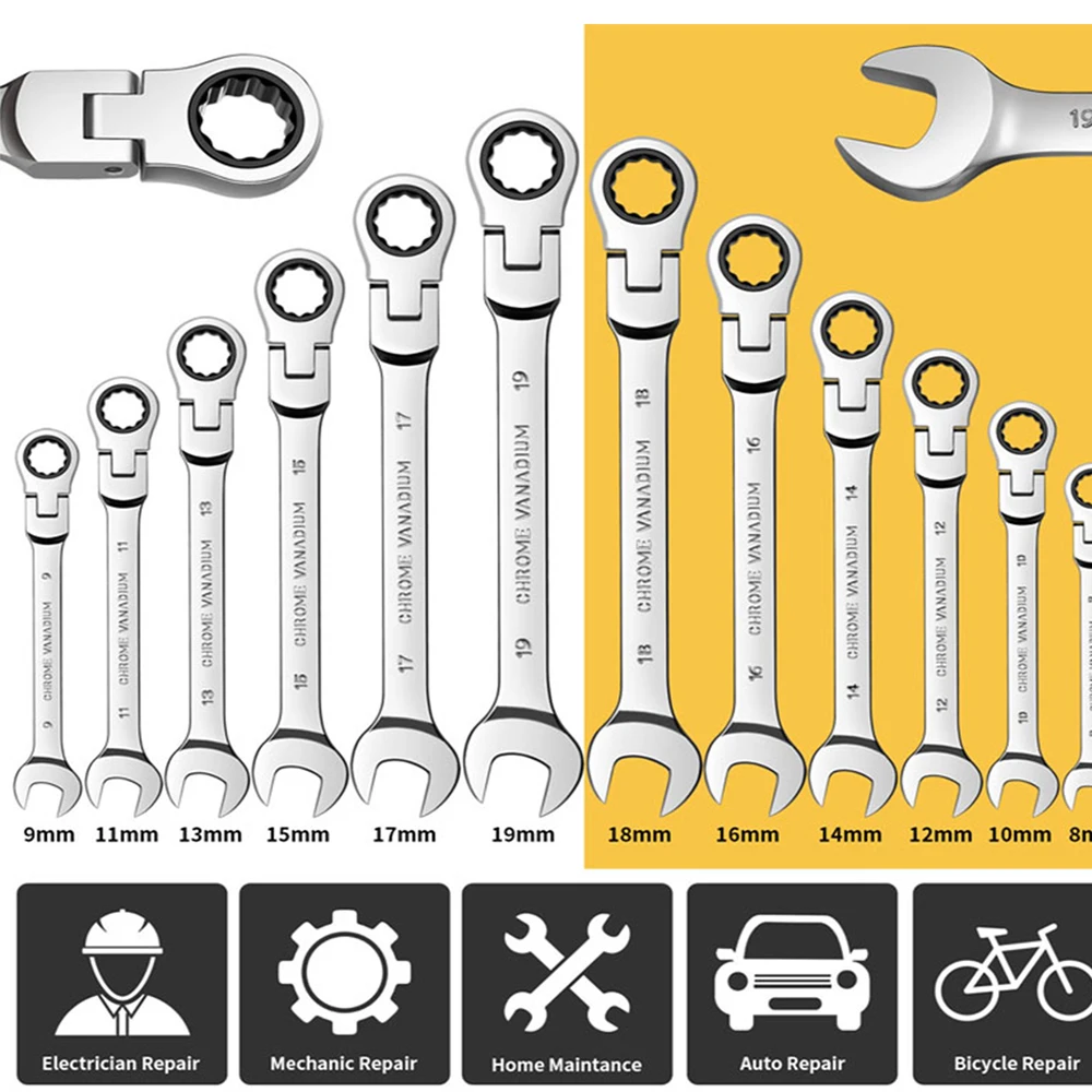 Ключ трещетка набор гаечных ключей, универсальный ключ для ремонта автомобиля, набор гибких торцевых ключей, ручной инструмент.