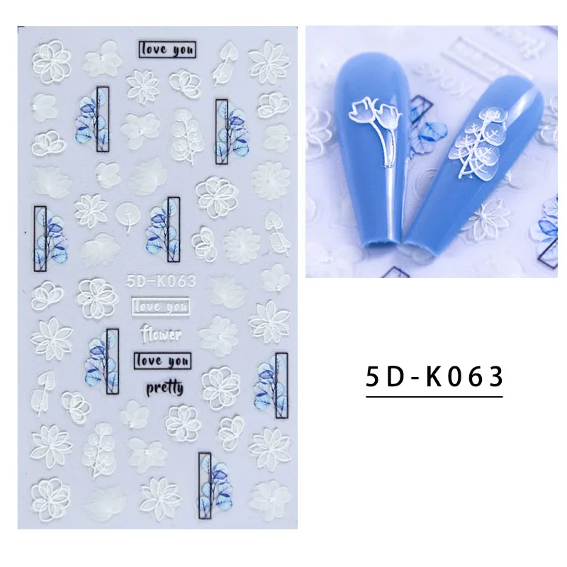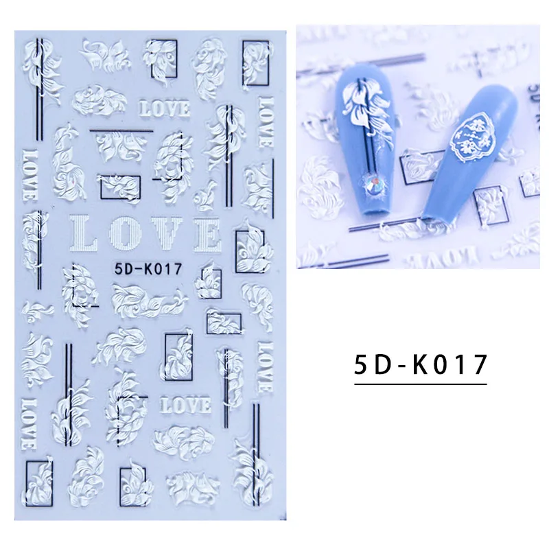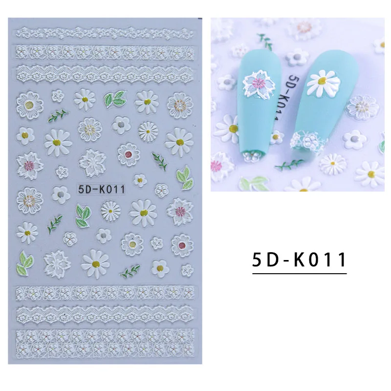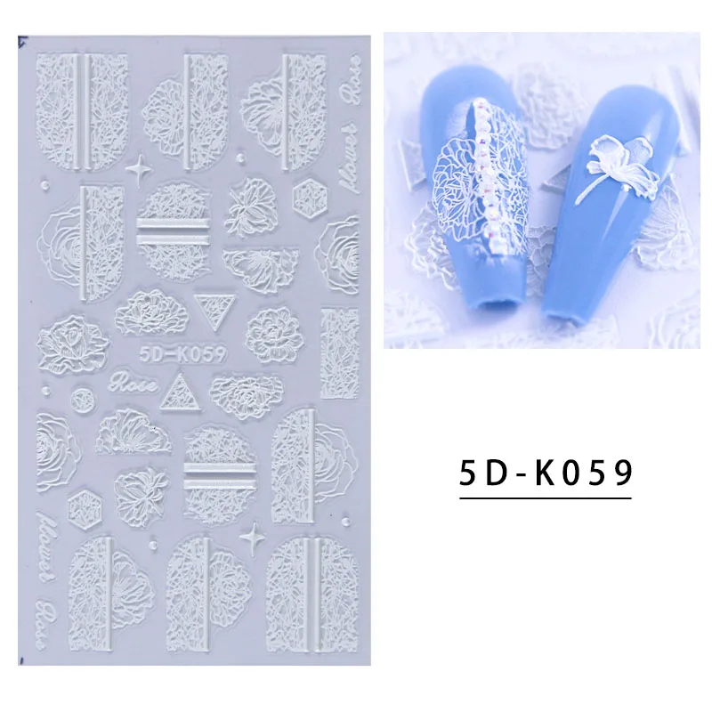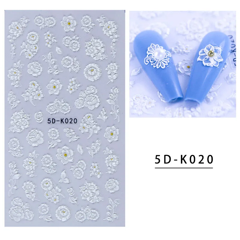 5D Подвески тисненый цветок наклейки для ногтей кружево цветок кружева белый Выгравированный дизайн с текстурированной слайдер наклейки для маникюра