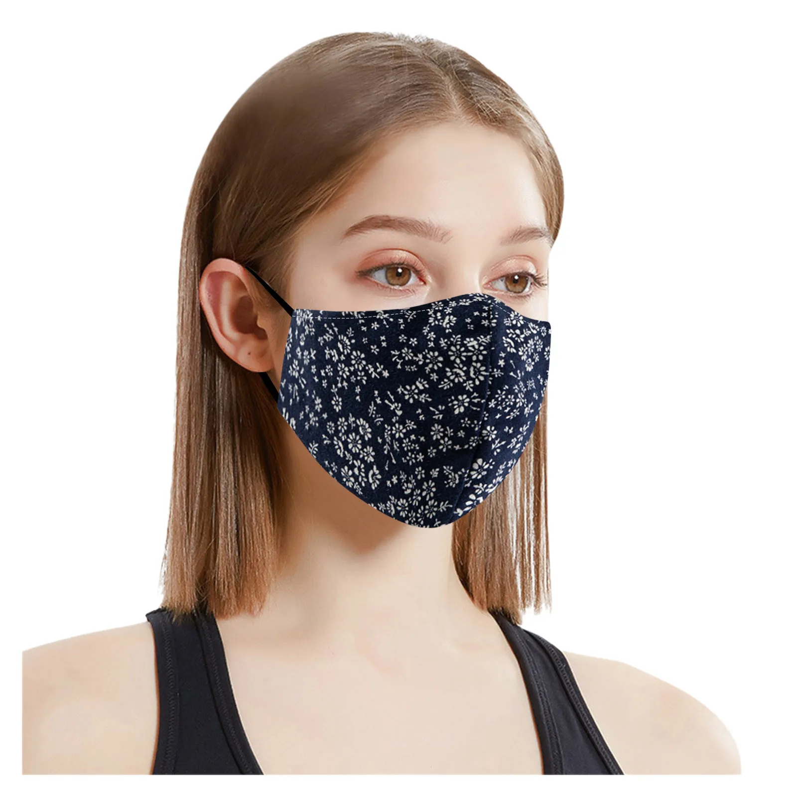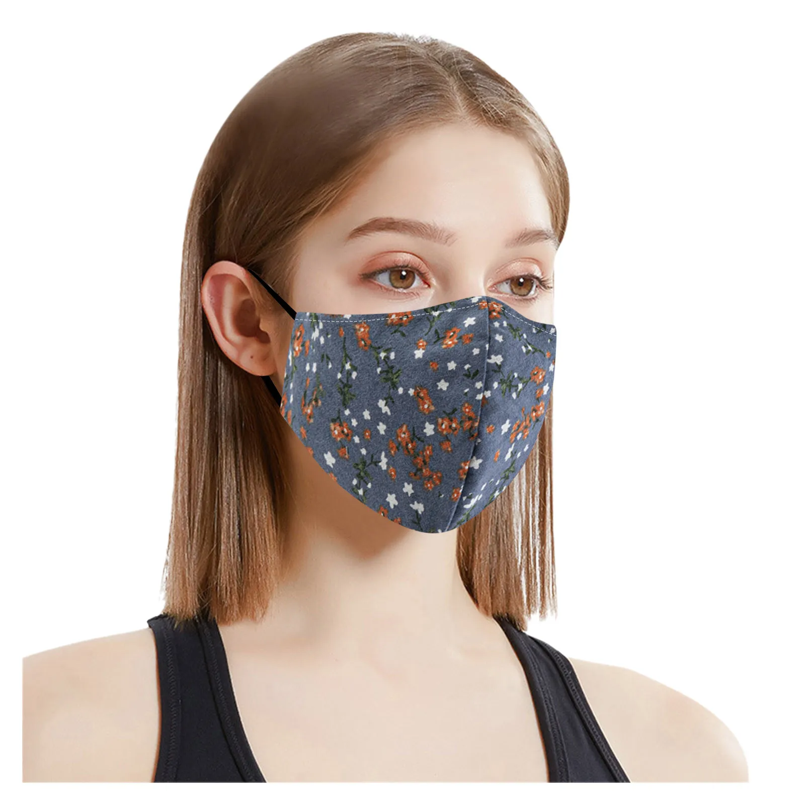 Стирающаяся Регулируемая хлопковая маска для лица с цветочным принт...