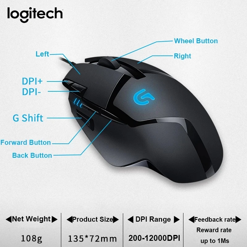 Мышь Logitech G402 игровая Проводная оптическая, 4000DPI, 8 программируемых USB-мышей