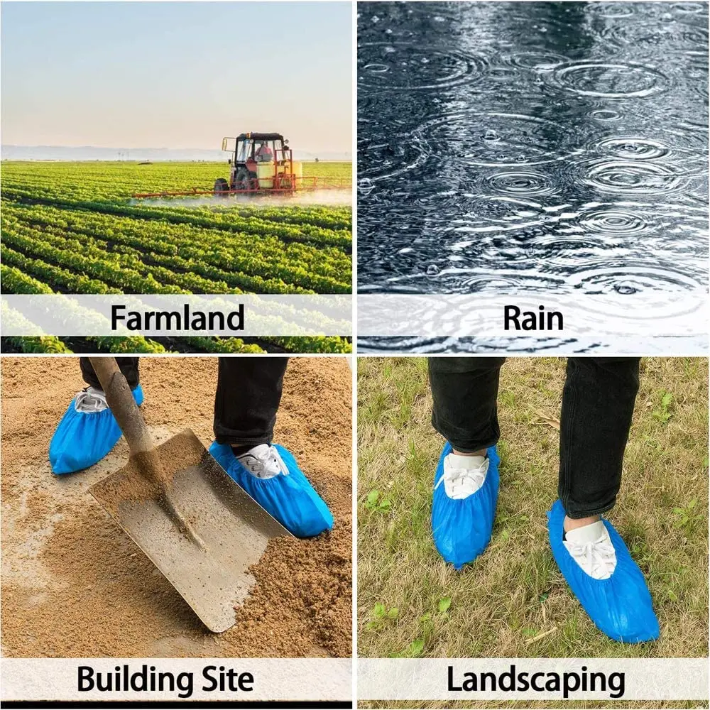 Высокое качество изготовлено из 100% спанбонда полипропилена (PE). Одноразовые и легкие, но прочные и долговечные. Эластичные манжеты на щиколотке. Подходит для большинства размеров обуви.