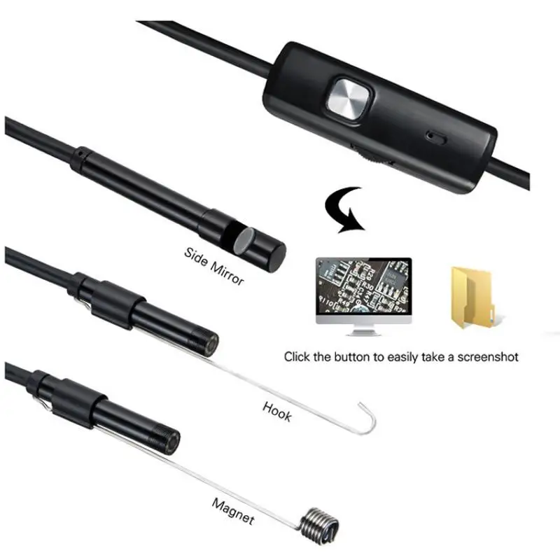Использование: Хо использовать держатьДиаметр зонда: 7Угол тестового поля: 67Водонепроницаемость: IP67Рабочая длина: 1000Пиксель: 30 ВтДисплей: нетРежим освещения: 6 светодиодовПараметры продукта:Камера диаметр: 7 мм/5,5 мм/8 мм на выборПикселей камеры: 300000Разрешение: 640*480 /30 кадровУгол Линзы: 67 градусов6 белых регулируемых светодиодный светИзделие с коротким расстоянием (SF) расстояние обзора: 3 см ~ 10 смВодонепроницаемый объектив: IP67Рабочая температура: -10-80 градусовРабочая платформа: android/windows2000/windows/xp/vista/windows7/windows8/windows10/Аксессуары: руководство, крюк, магнит, зеркало, фиксированный рукав