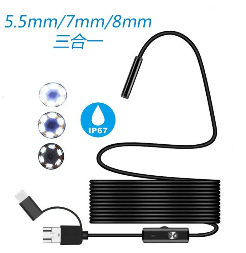 3 в 1, Водонепроницаемый эндоскоп с USB и гибкой камерой 5,5 мм
