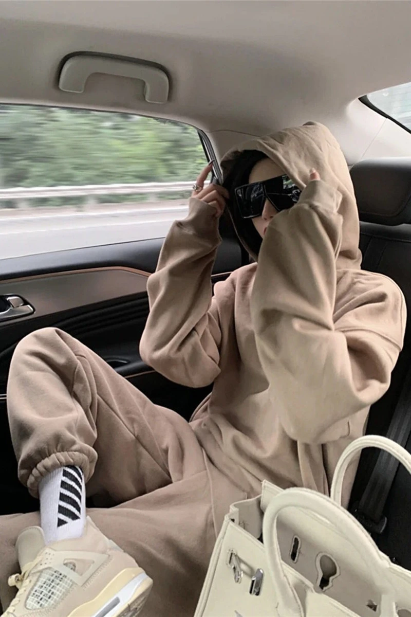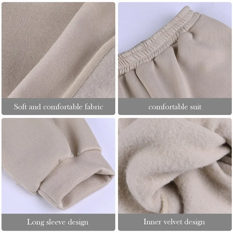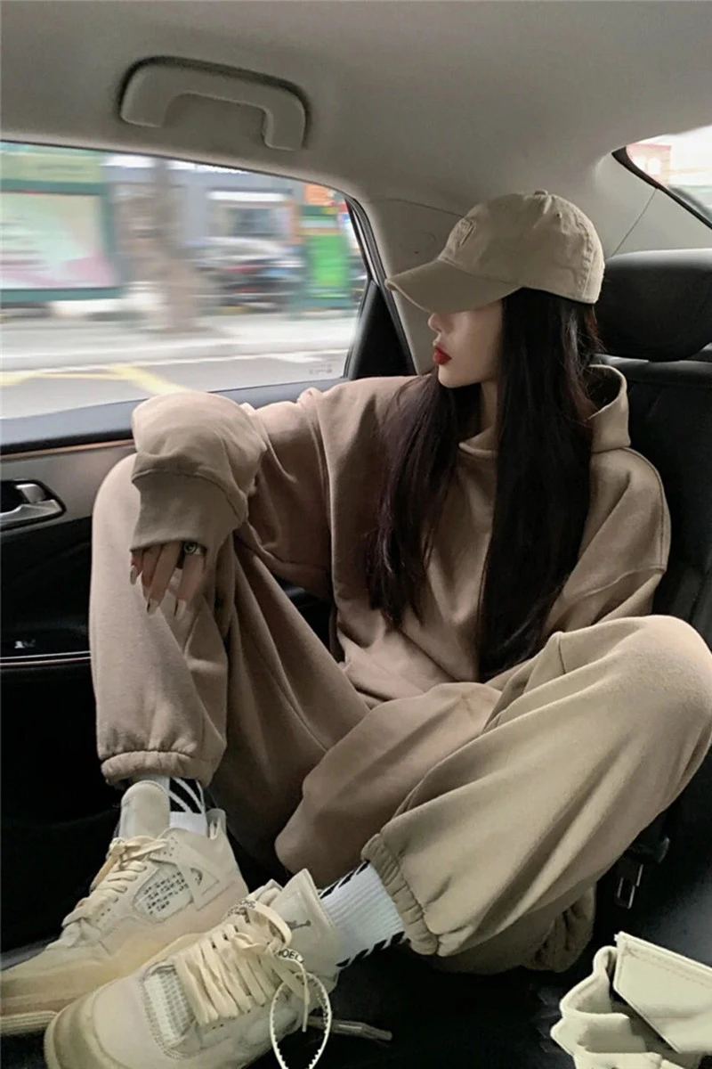 Спортивный костюм с капюшоном, женский спортивный костюм, Осенний флисовый свитшот, комплект из двух предметов, повседневный Однотонный женский костюм большого размера с длинными брюками