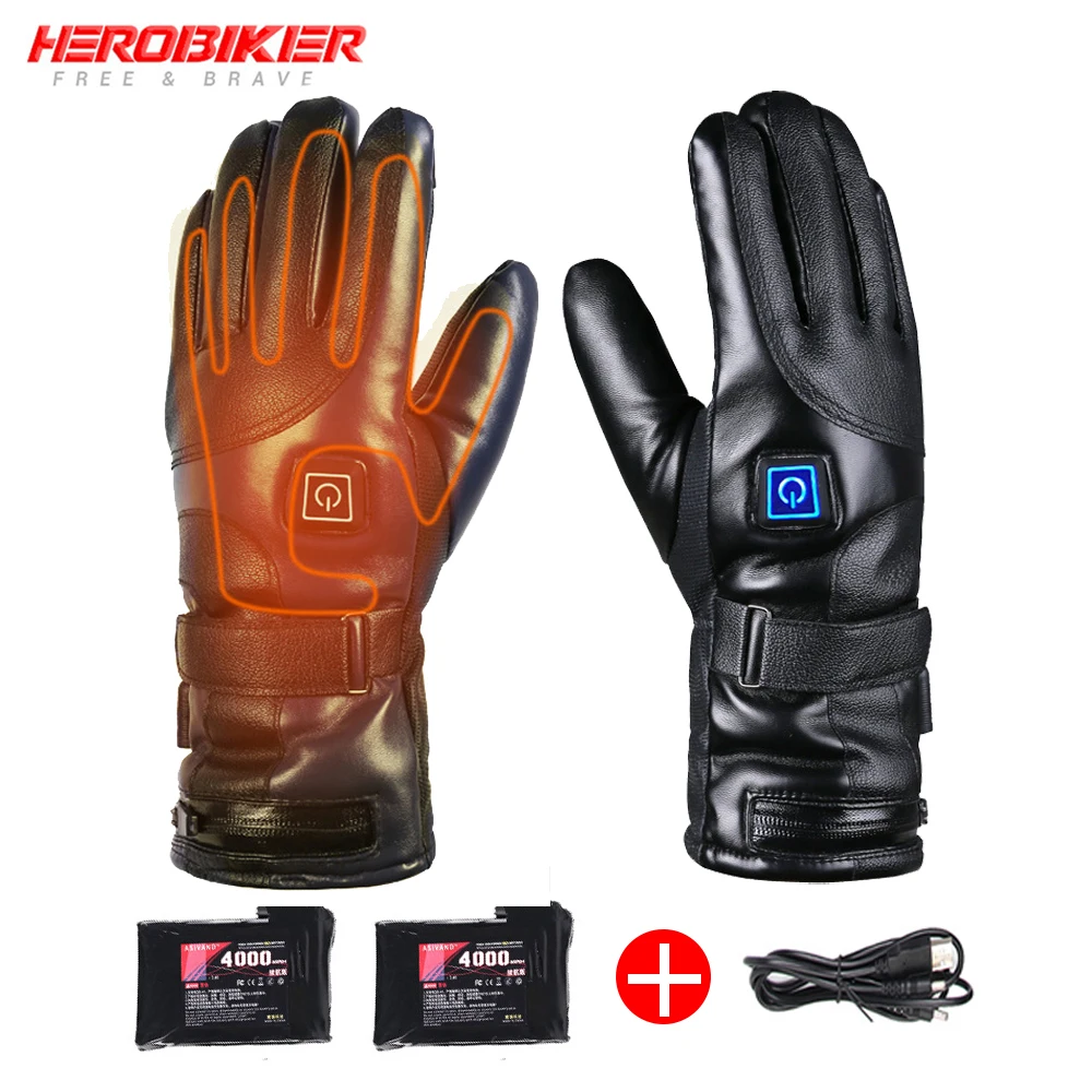 Мотоциклетные Перчатки HEROBIKER с подогревом, перчатки с электрическим подогревом, теплые водонепроницаемые перчатки для сенсорного экрана, зимние аксессуары для верховой езды, зима