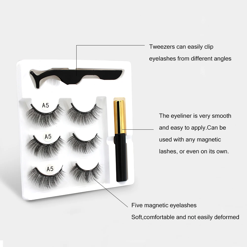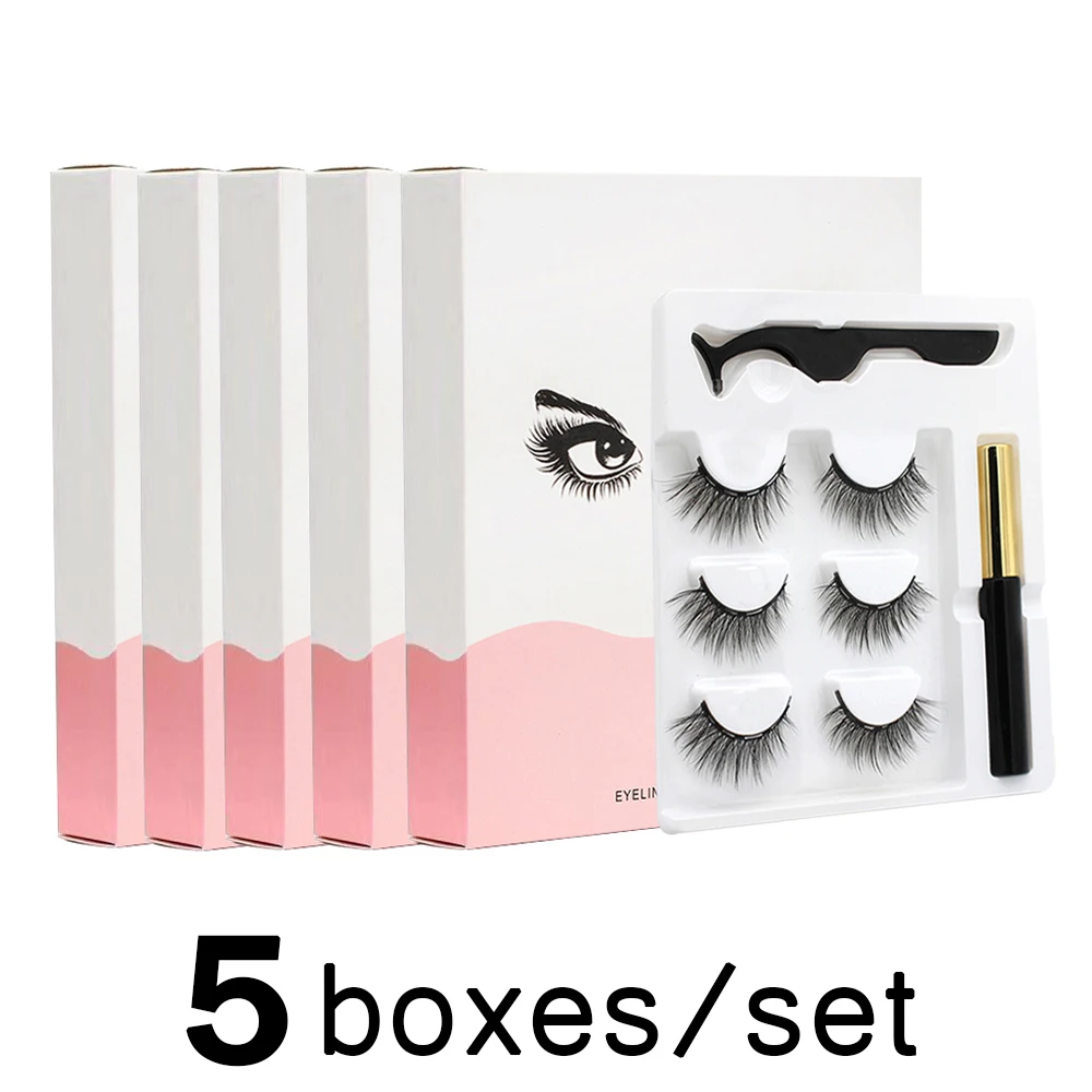 Оптовая продажа, 5 коробоккомплект, 3 пары, магнитная подводка для глаз, искусственные ресницы, водонепроницаемые Жидкие короткие Искусственные ресницы, инструменты для макияжа