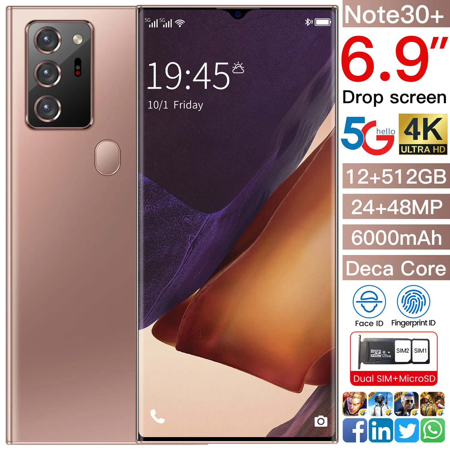Новинка 2022, смартфон с идентификацией по отпечатку пальца, ультратонкий, 12 + 512 ГБ, для Samsung Galaxy Note30 +