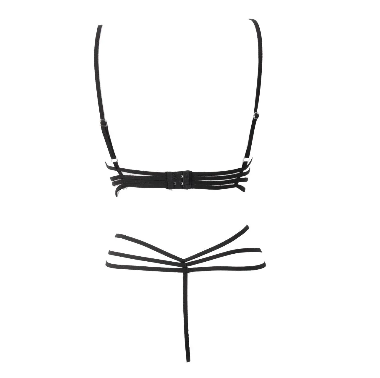 Комплект эротического нижнего белья для женщин, кружевной бюстгальтер с открытой спиной, стринги, ночная повязка, комбинация экзотическая