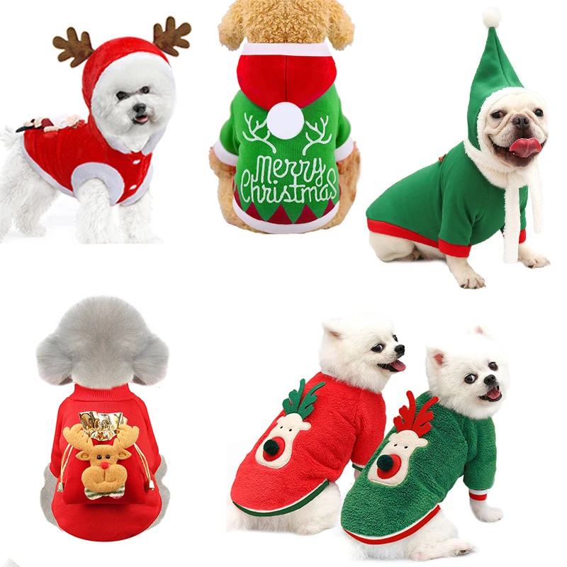 Рождественская одежда для собаки, одежда для домашних животных, костюм Санты, Новогодняя одежда с котом, Рождественская шляпа с оленем, пальто с капюшоном, вечерние наряды