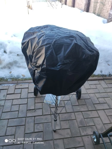 Чехол брал для гриля Weber 5750. На диаметр 57 см сел с запасом, но меньше брать не стоит, т.к. висят аксессуары на ручке. По середине чехла хотелось бы ещё затягивать, потому что снизу котла, где ножки крепятся самое узкое место. Придется прошить вставку с веревкой для затяжки. Но это каждый решит сам - делать или нет. Чехол свою функцию выполняет и это главное