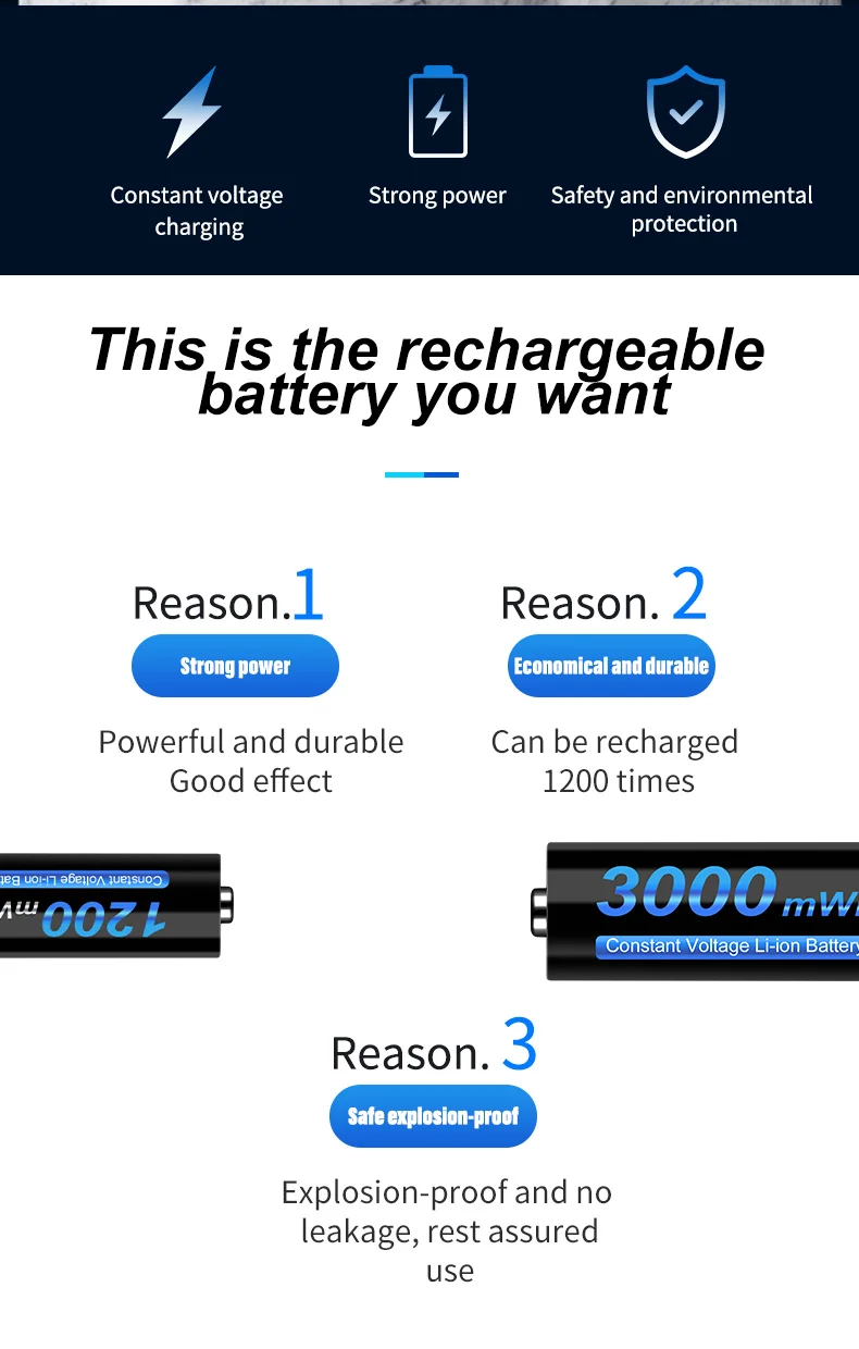 Литий-ионная аккумуляторная батарея 1,5 в AAA, 1,5 МВтч, В, 3 А