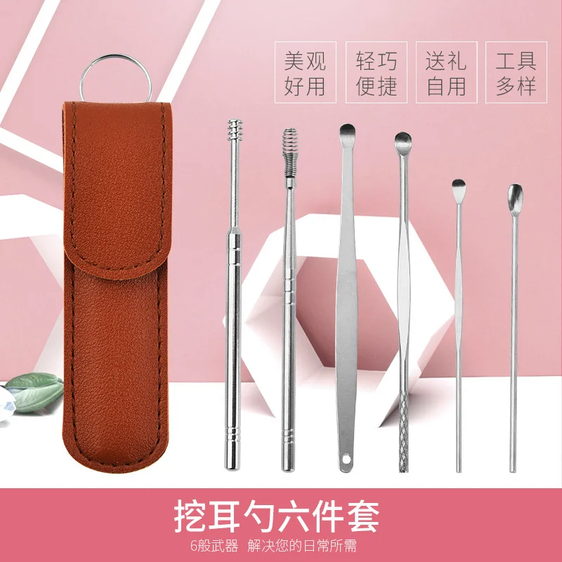 Набор инструментов для очистки ушных восков, 6 шт., с сумкой для хр...