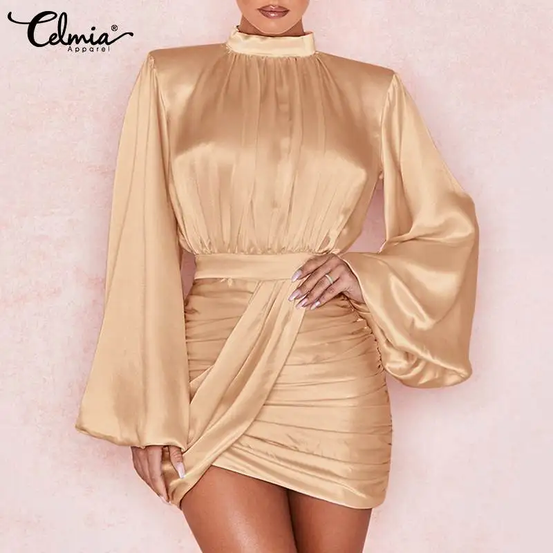 Женское атласное мини-платье Celmia осень 2022, элегантные платья с...