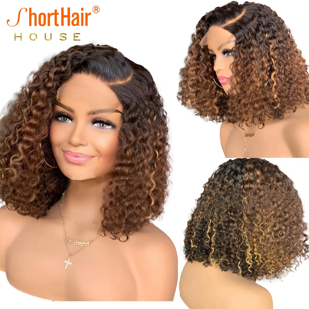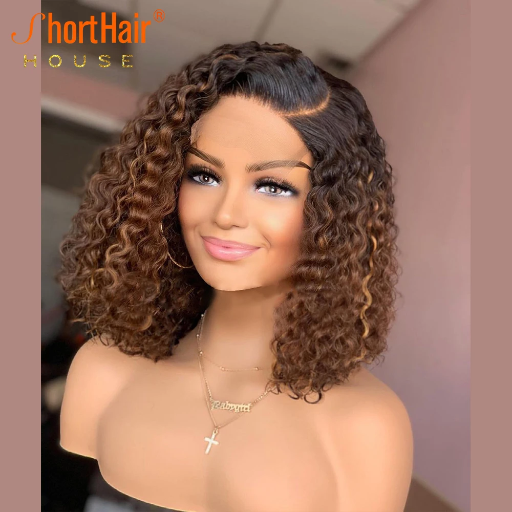 Медовая Блондинка Омбре 1B30 короткий Боб вьющийся парик для женщин...