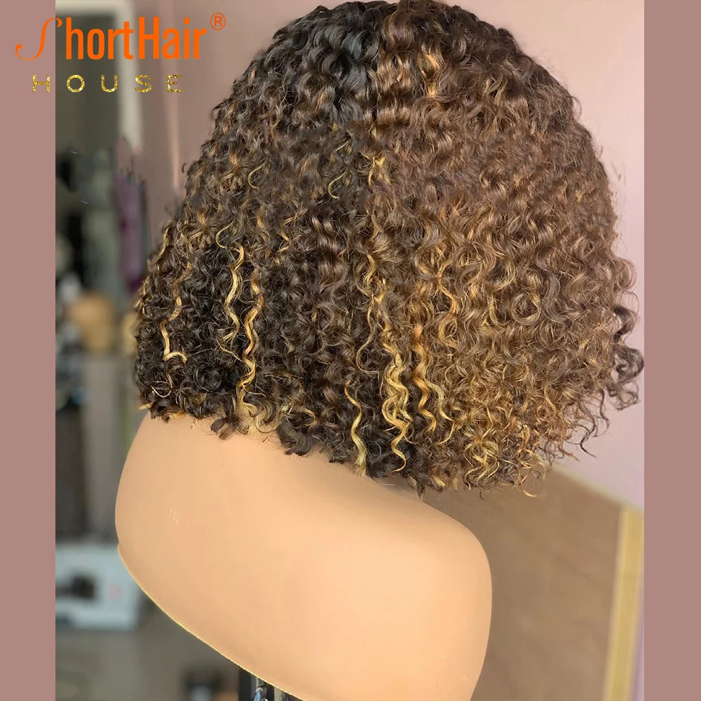 Короткий вьющийся медовый блонд Боб вьющиеся человеческие волосы па...