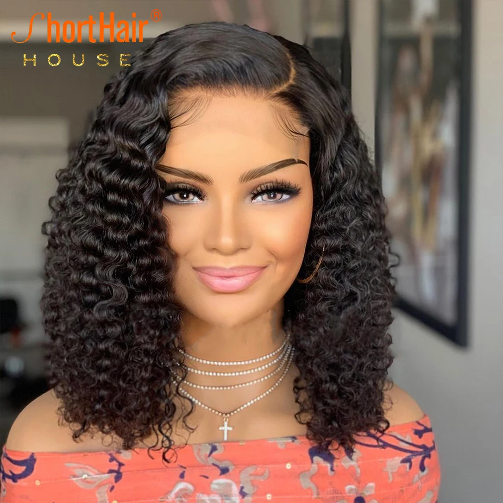 Афро кудрявые 4X4 кружевные короткие парики боб кудрявые передние ч...