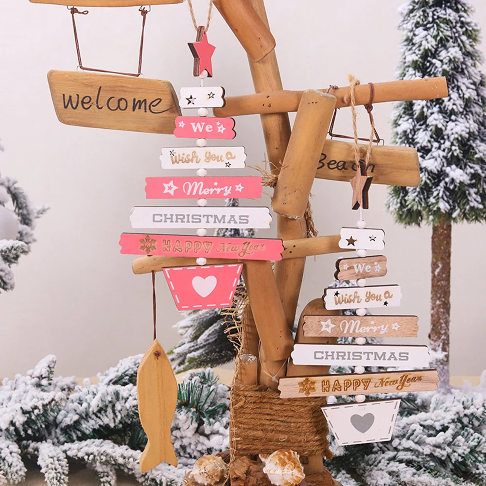 Деревянная настенная подвеска в виде елки с Новым годом, украшение ...